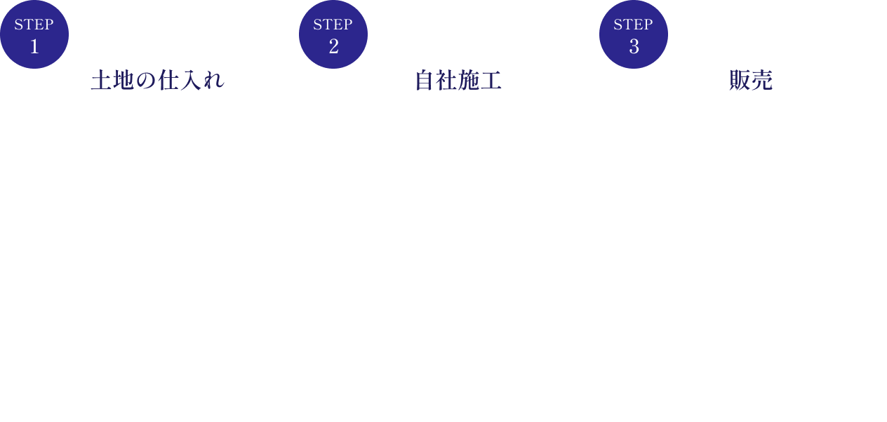 タクトホームとの連携や、造成工事で培った技術とノウハウを用地選定に活かし、宅地用地の仕入れから企画・開発・販売までを自社で一貫して行います。