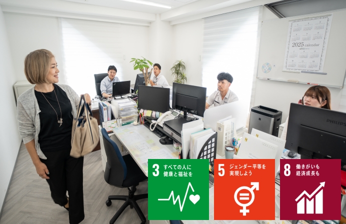 柔軟な働き方の推進や職場環境の改善を通じて、ワークライフバランスを支援し、従業員の心身の健康と充実感の向上を目指します。